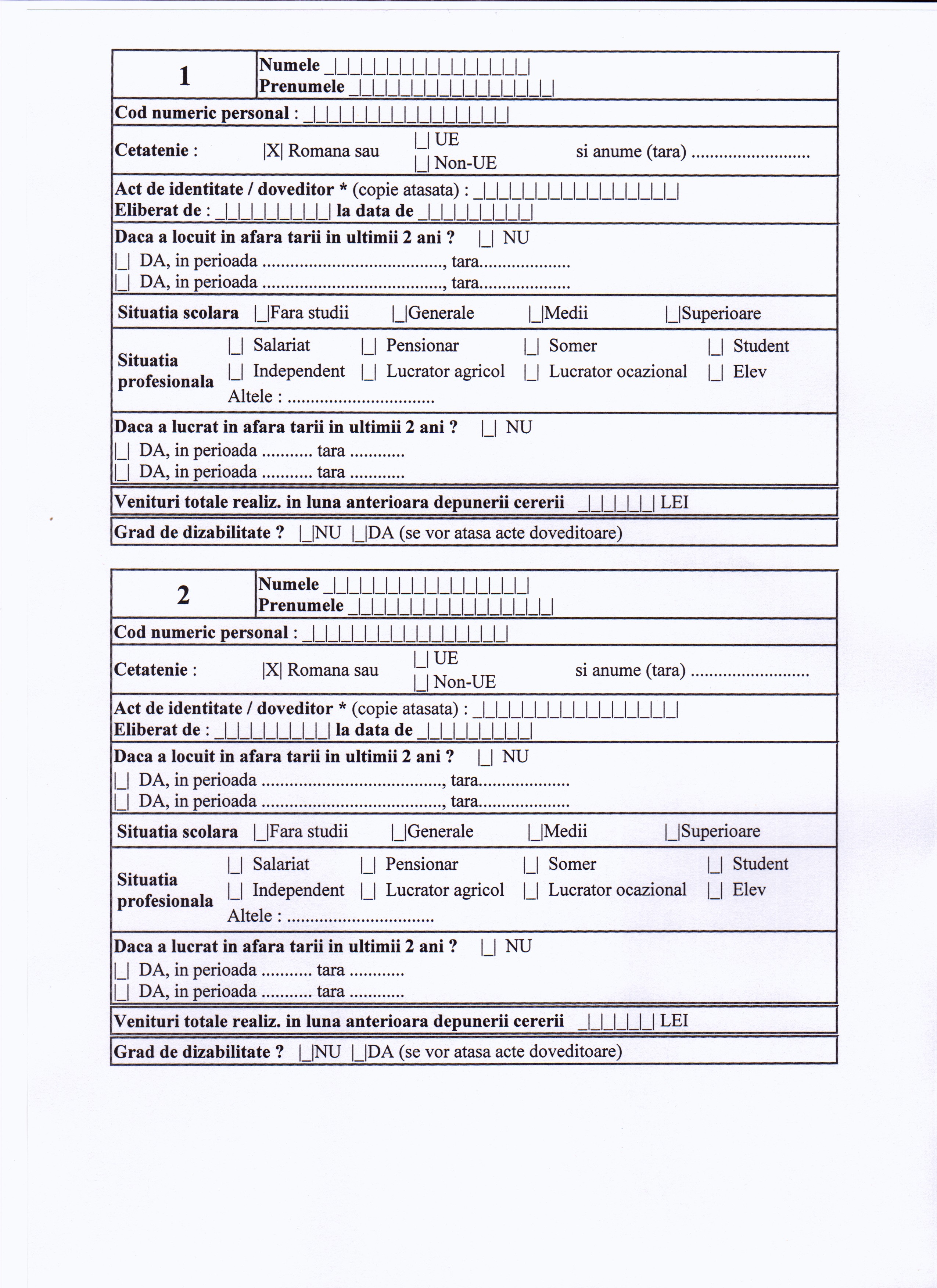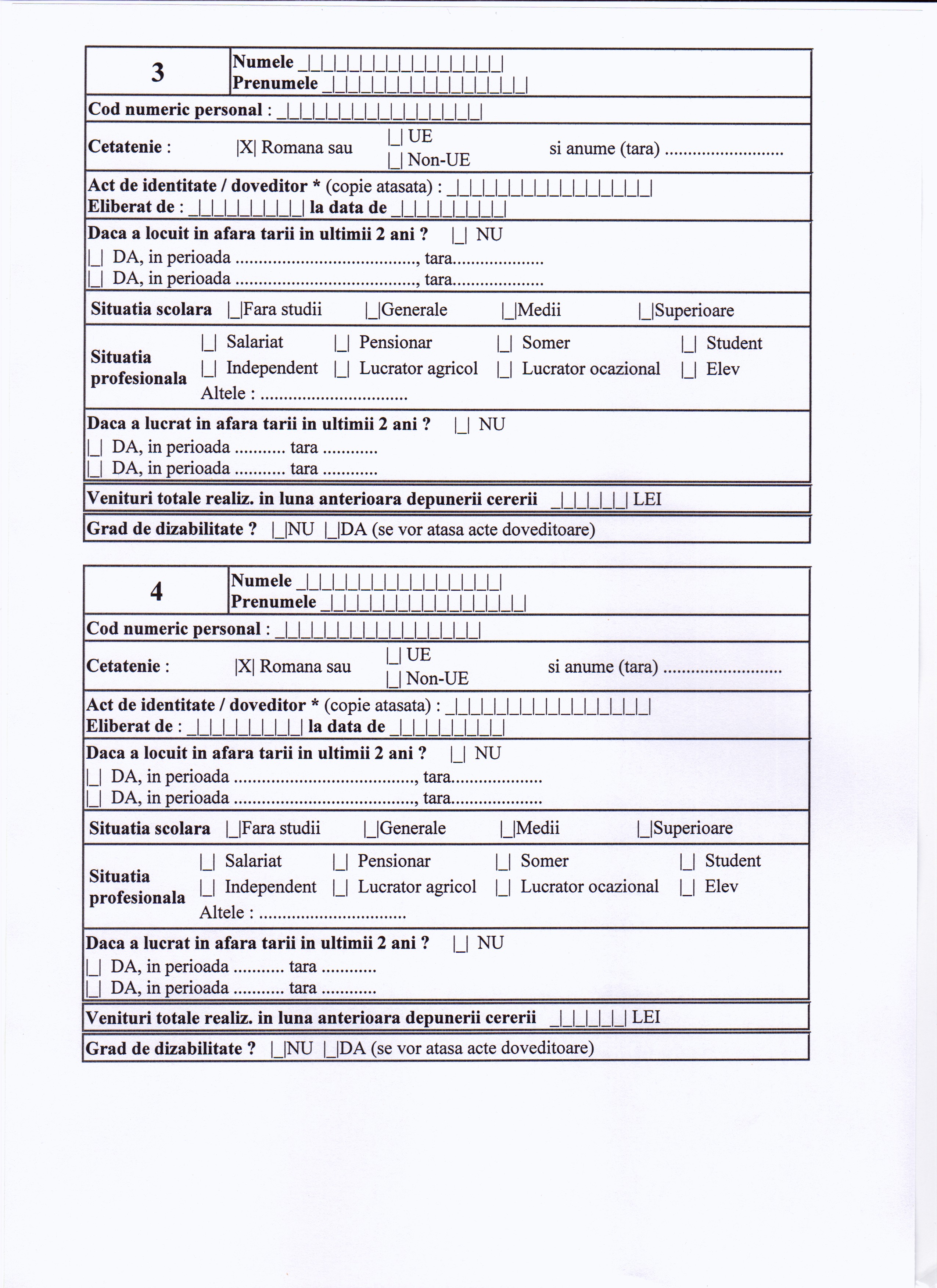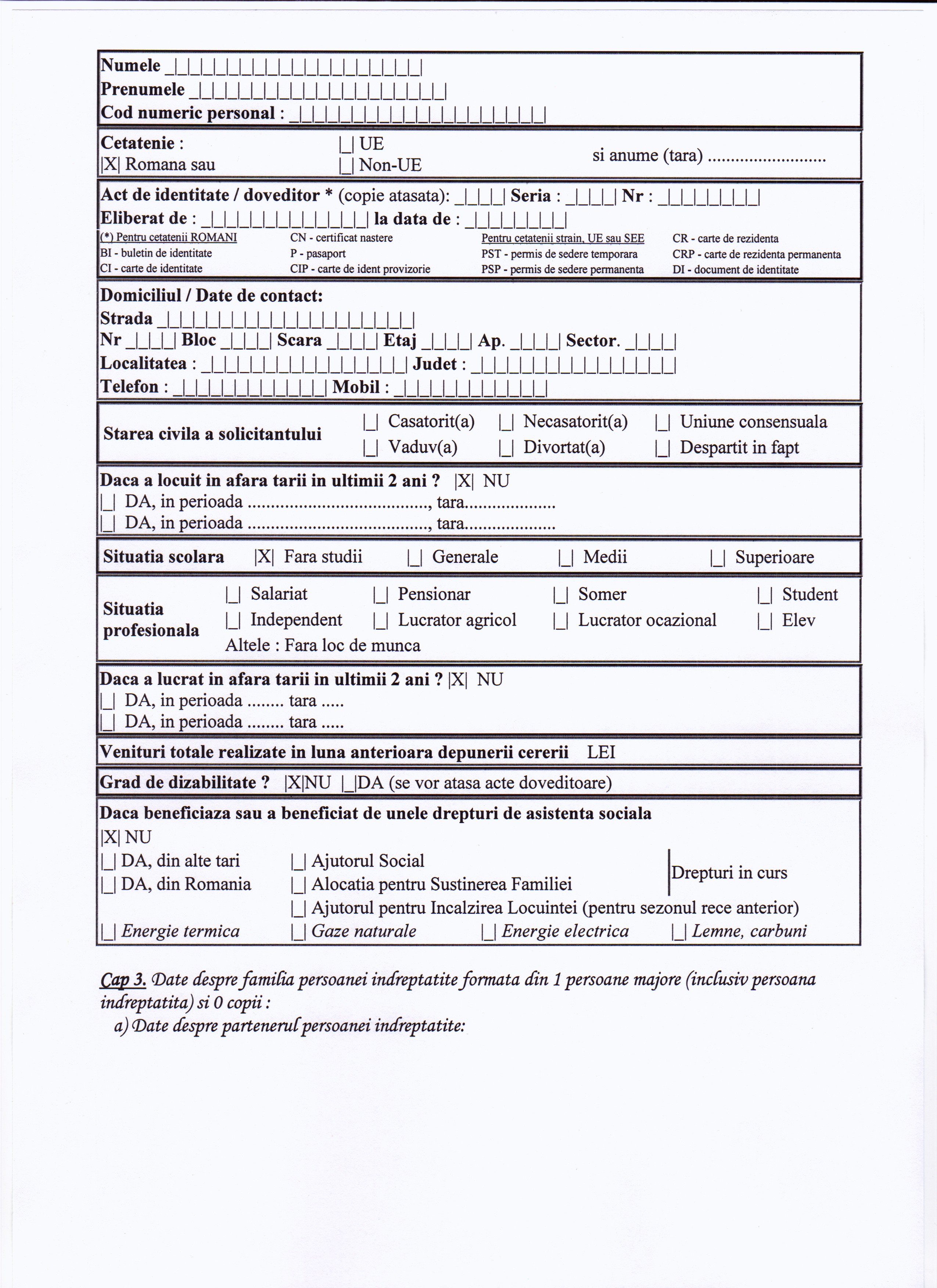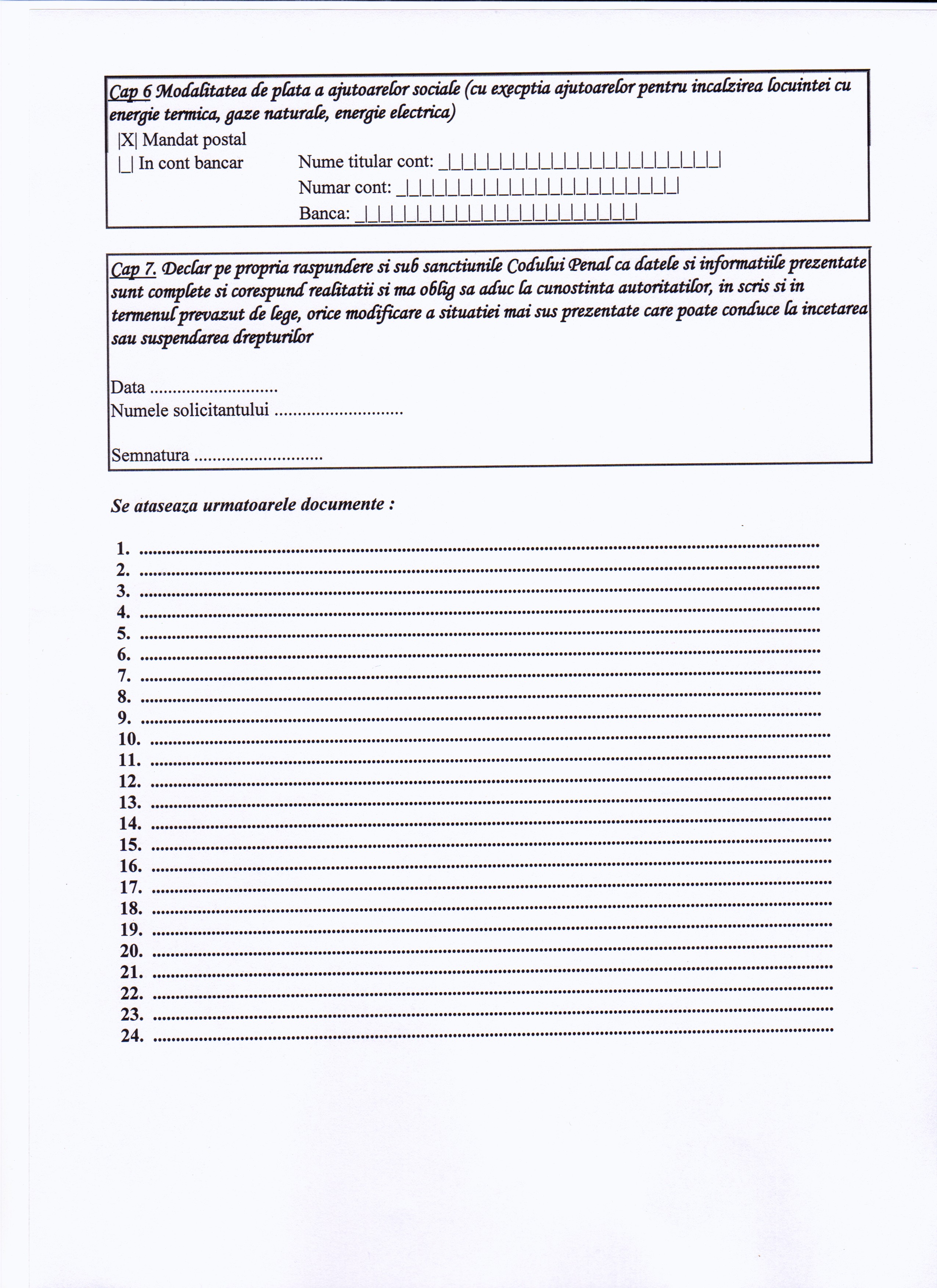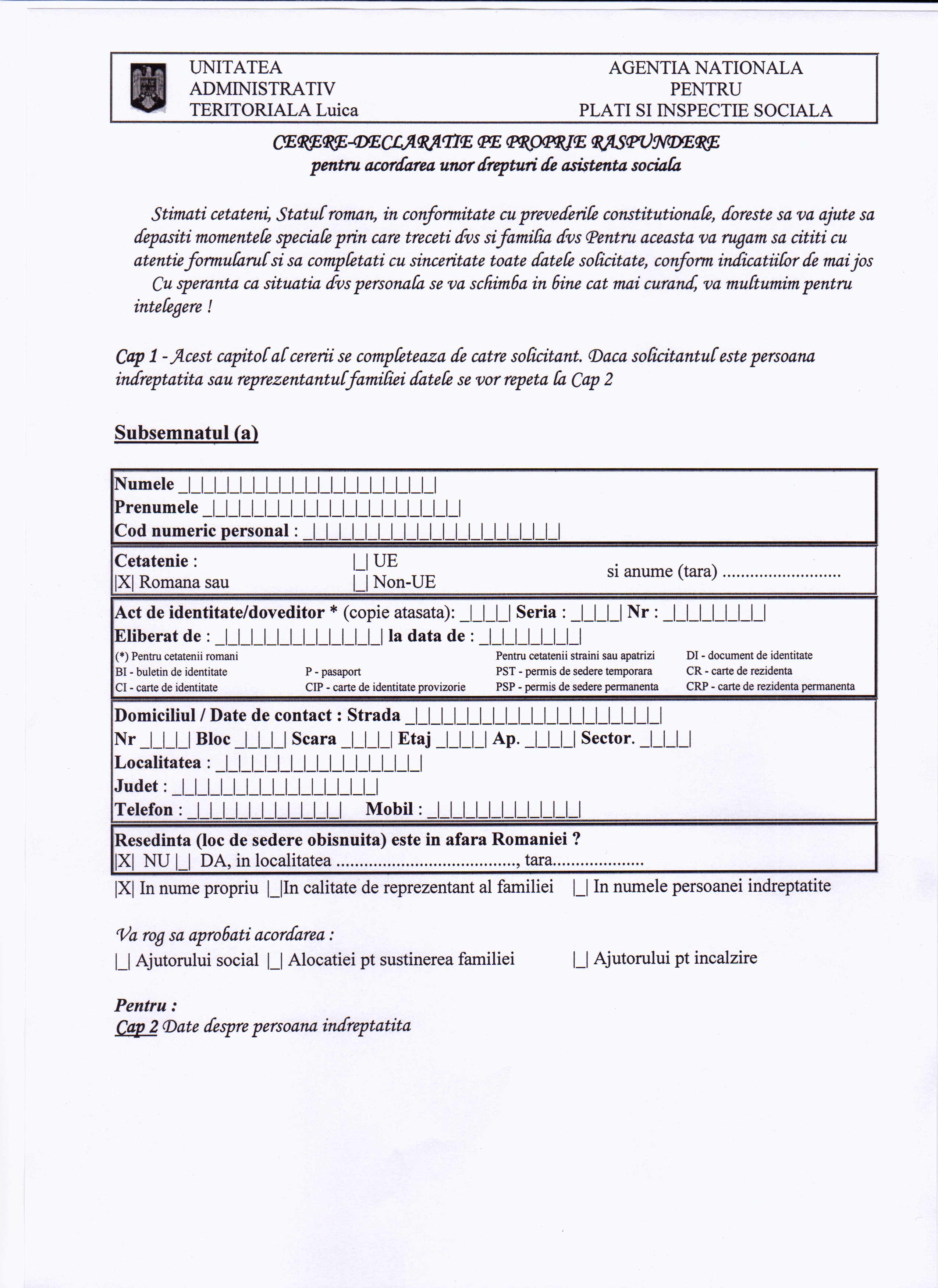 CERERE-DECLARATIE PE PROPRIA RASPUNDERE PENTRU ACORDAREA UNOR DREPTURI DE ASISTENTA SOCIALA